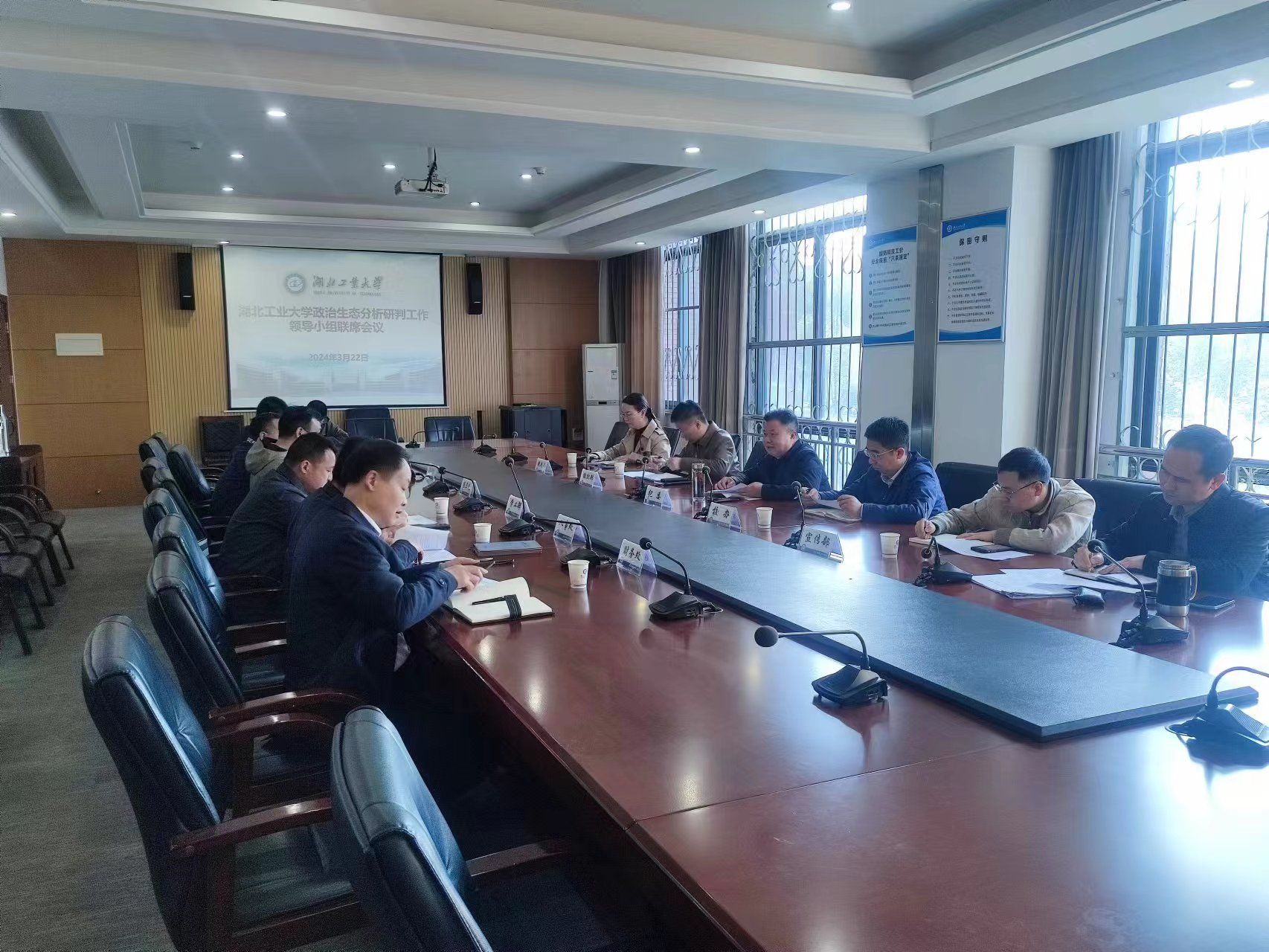 会议首先学习传达了省委书记王蒙徽在2023年度市州和省直单位“一把手”述责述廉会议上讲话精神和进一步深化政治生态分析研判工作的要求。随后,学校各政治生态分析研判工作领导小组成员单位对2023年度5个集中研判对象政治生态情况逐一进行了分析研判,并提出了意见建议,会商形成了湖北工业大学2023年度政治生态分析研判意见。最后,政治生态分析研判工作领导小组研究了2024年政治生态研判工作计划,讨论选出了5个集中研判对象。